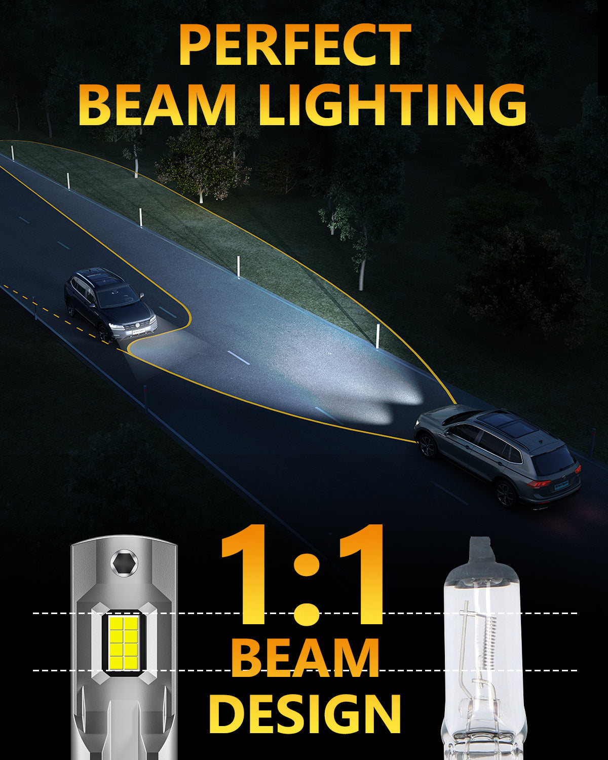 MOTOBEE H11 LED have the same luminous point as the original bulb, with a clear cut-off line to protect the opposite driver's field of vision to make driving safer. Its ultra-thin bead chip improves light uniformity and extends the illumination range, eliminating black spots or shadow areas. It provides a wider field of vision and safer driving compared to other led headlight bulb.