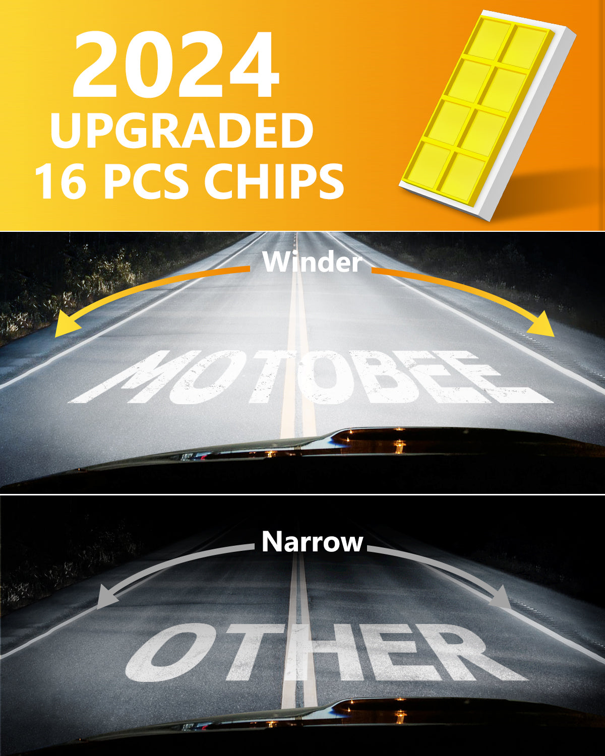 The MOTOBEE M1 Series comes with 8 sets of CSP LED chips per side and 16 sets per side for dual lights. Provide more illumination at lower power consumption and are brighter than stock halogens, making them easier to see at night and enhance your driving safety.